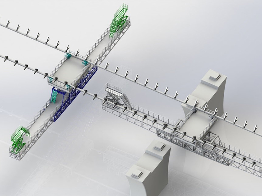 检查车可对钢箱梁内进行全方位、全立体的检测和维护。直线行走可以检测大部分区域;